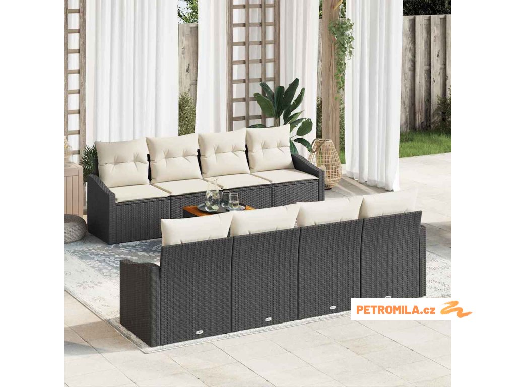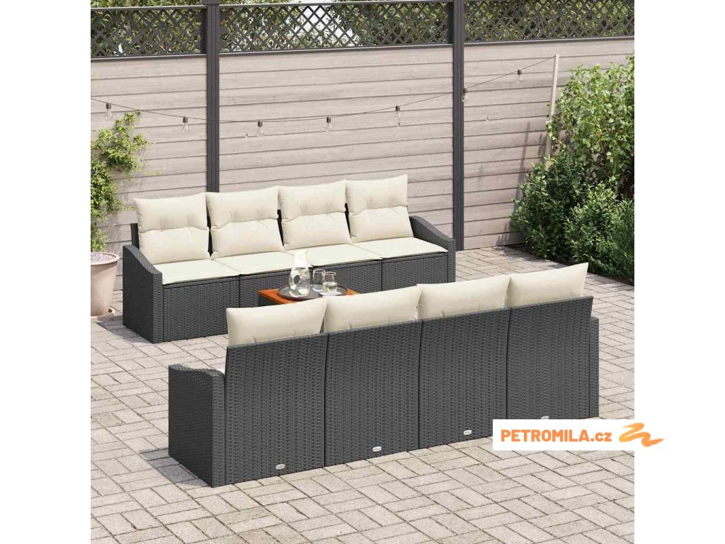 Sada zahradních pohovek 9 pcs Černá a krémová polyratan