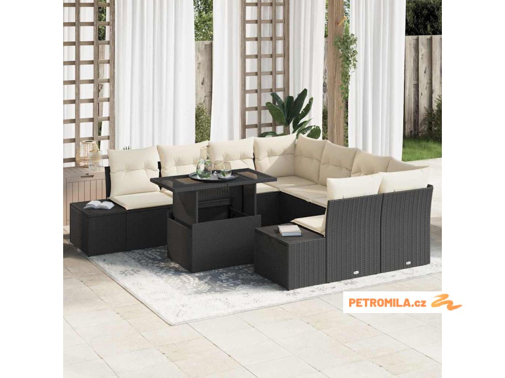 Sada zahradních pohovek 9 pcs Černá a krémová polyratan