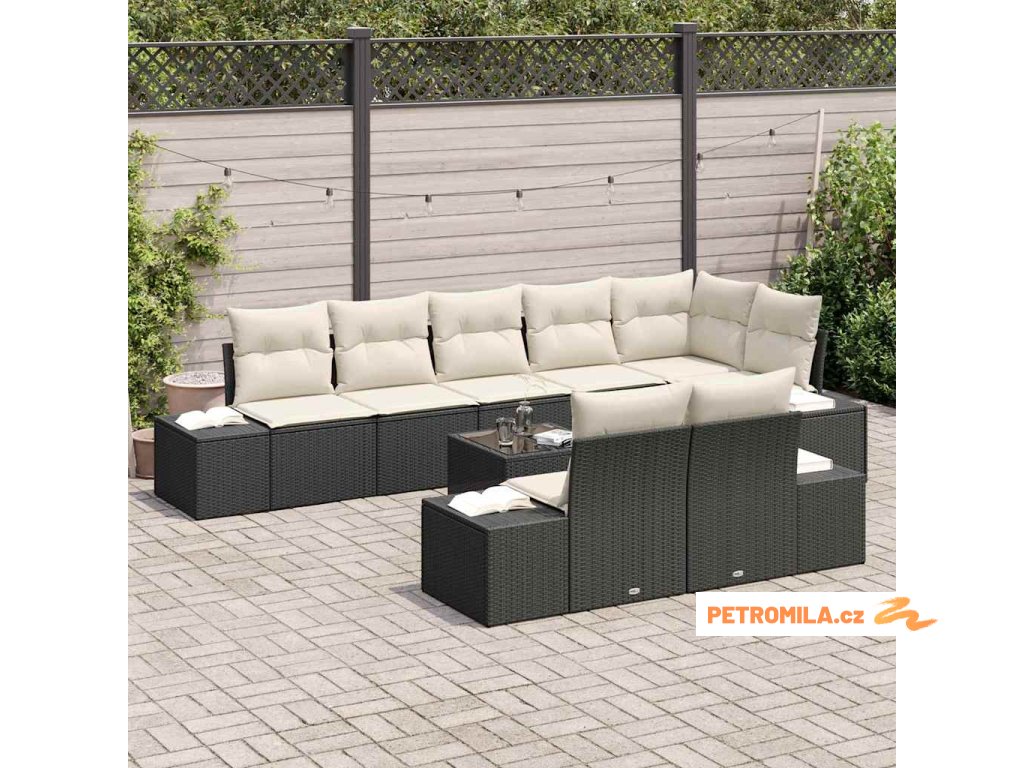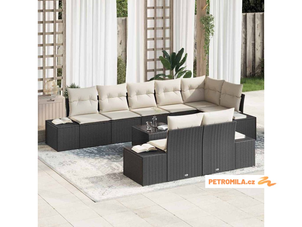 Sada zahradních pohovek 9 pcs Černá a krémová polyratan