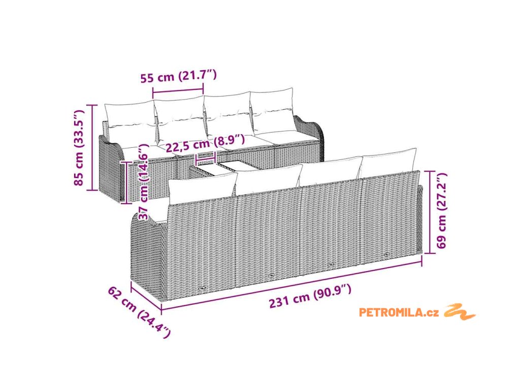 - Celkové rozměry: 231 x 62 x 85 cm (D x Š x V)