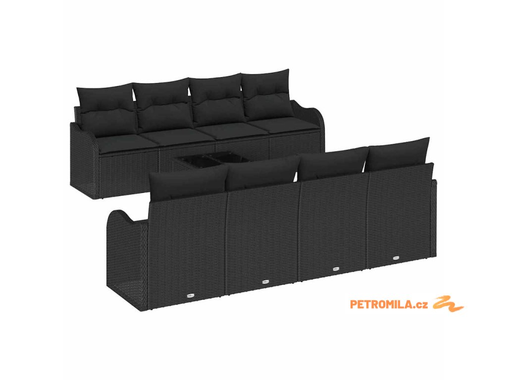 Sada zahradních pohovek 9 pcs Černá Poly ratan a ocel a sklo