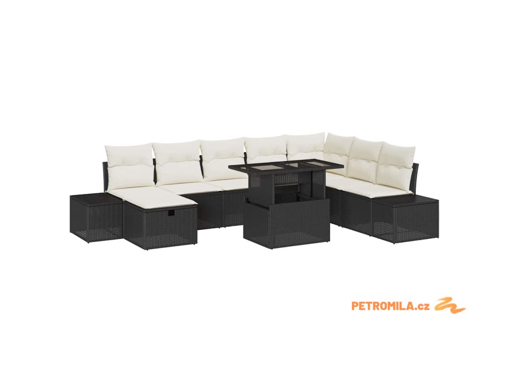 Sada zahradních pohovek 9 pcs Černá polyratan