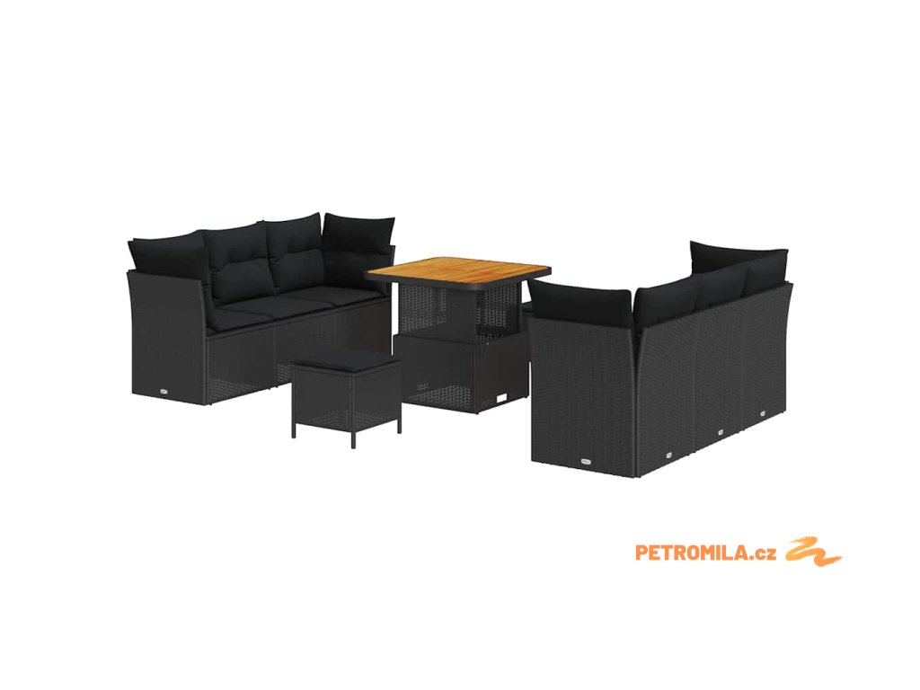 Sada zahradních pohovek 9 pcs Černá polyratan