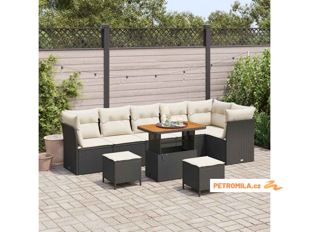 9dílný zahradní jídelní set s poduškami černý polyratan