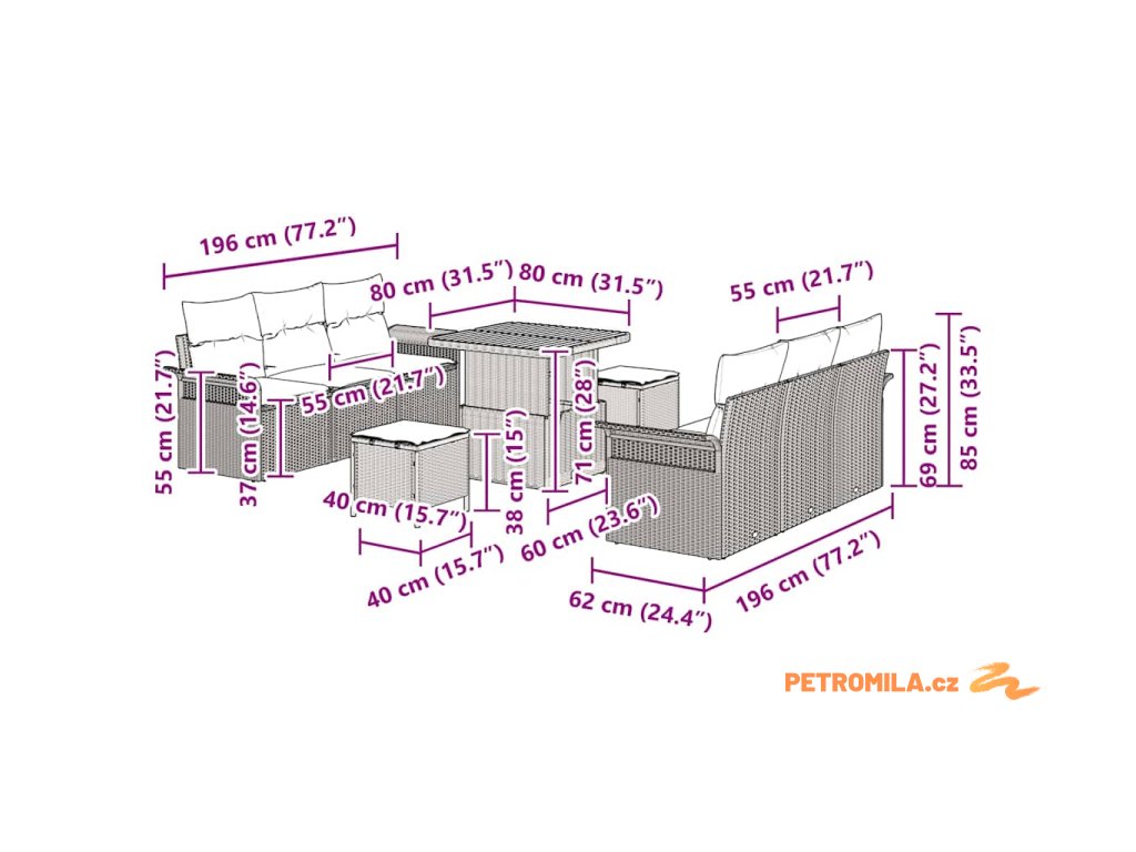 Sada zahradních pohovek s polštářem 8 pcs Béžová Poly ratan