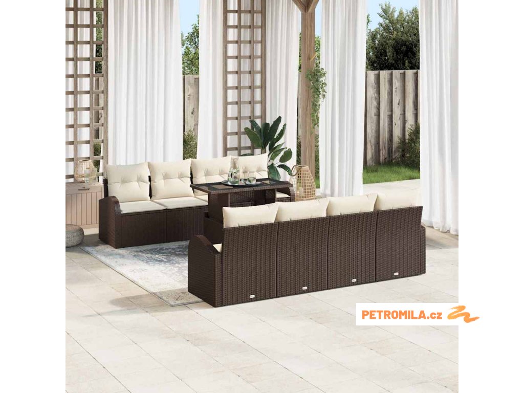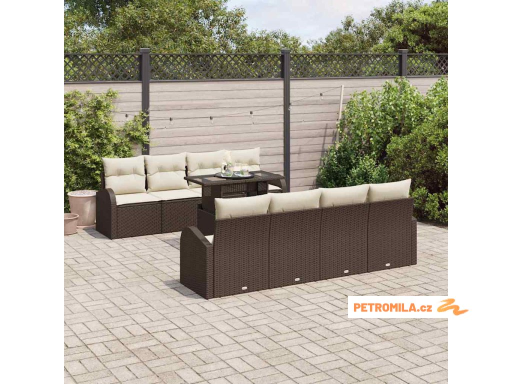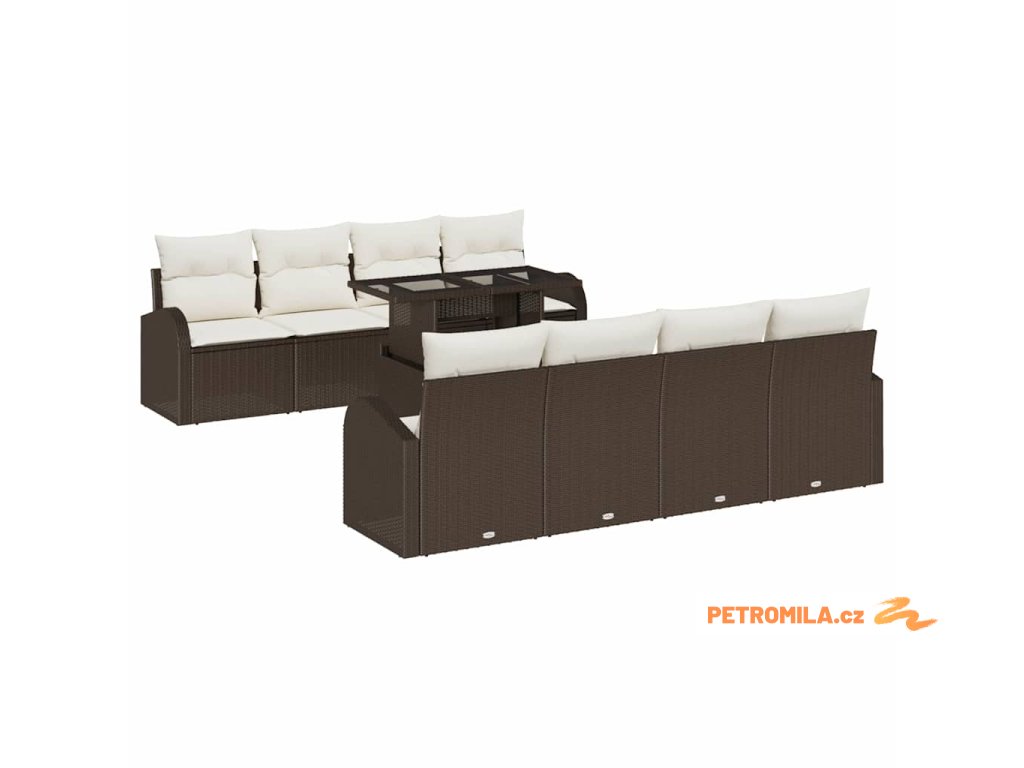 Sada zahradních pohovek 9 pcs Hnědá 100 x 55 x 73 cm Poly ratan