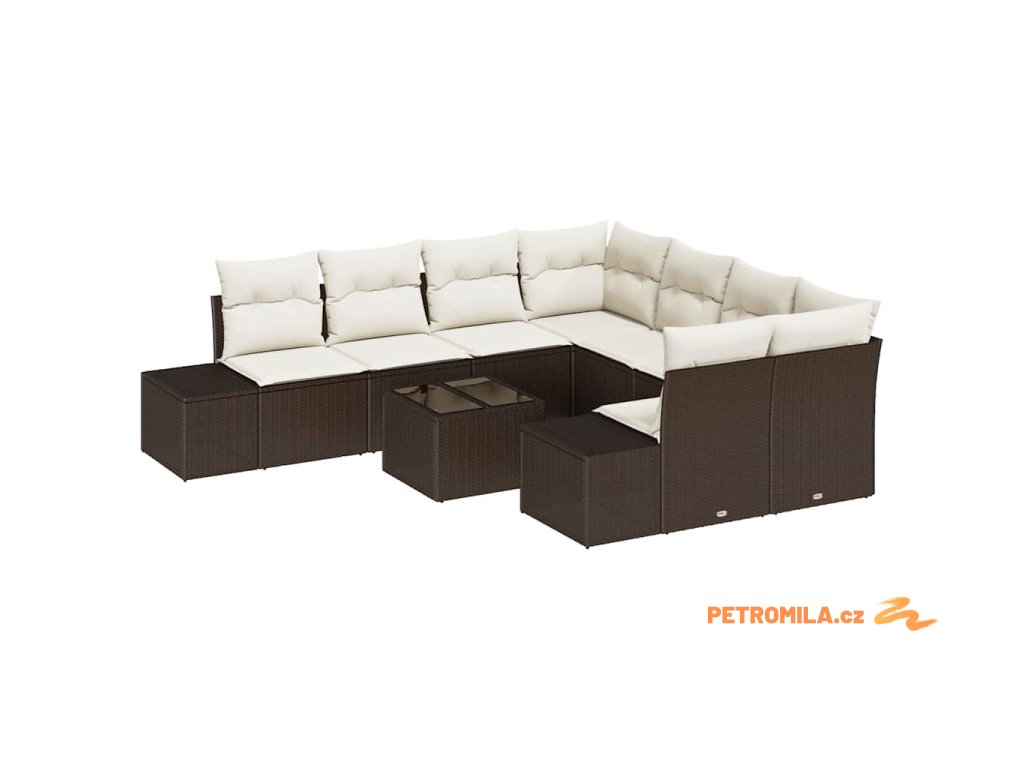 Sada zahradních pohovek 9 pcs Hnědá a krémová polyratan