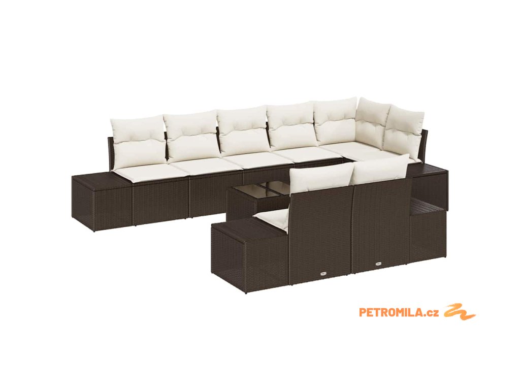 Sada zahradních pohovek 9 pcs Hnědá a krémová polyratan