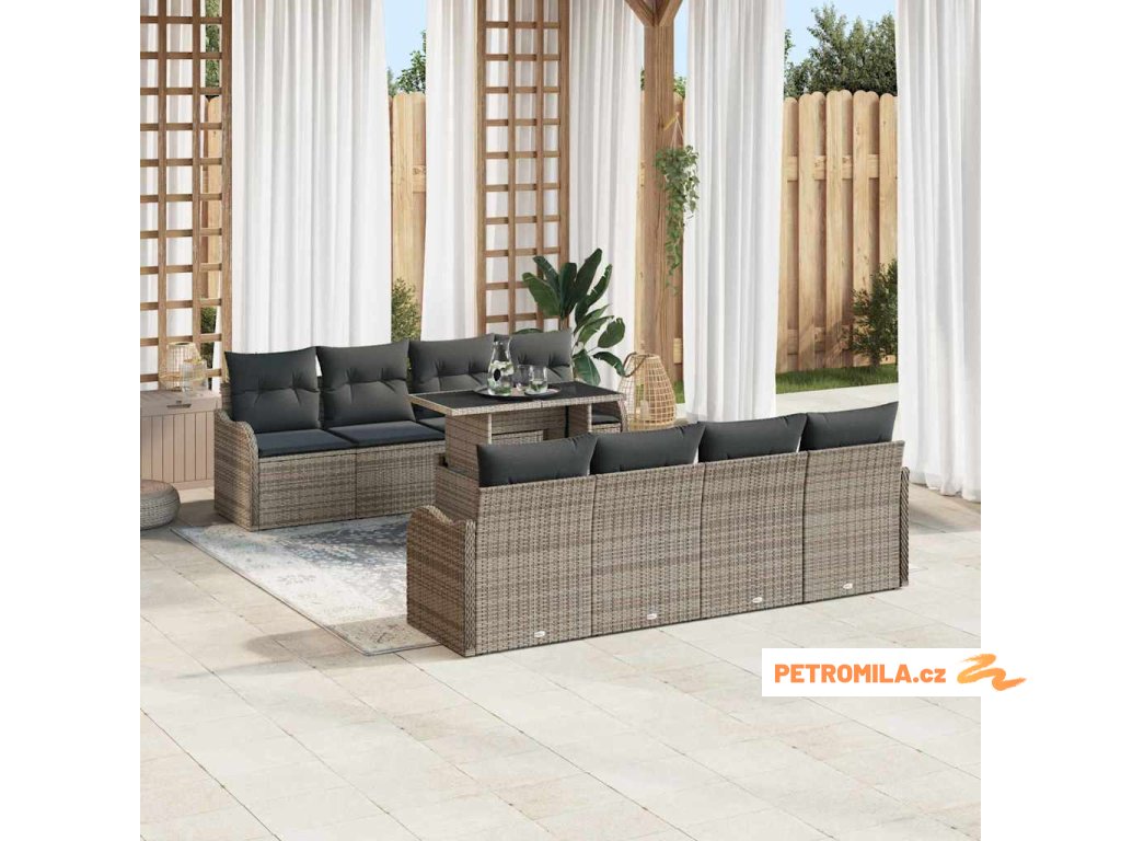 Sada zahradních pohovek 9 pcs Šedá 100 x 55 x 73 cm Poly ratan