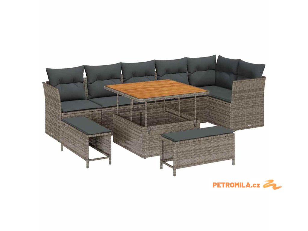 Sada zahradních pohovek 9 pcs Šedá polyratan