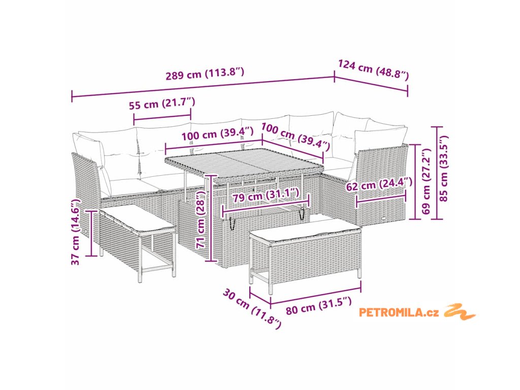 Sada zahradních pohovek s polštářem s úložištěm 8 pcs polyratan