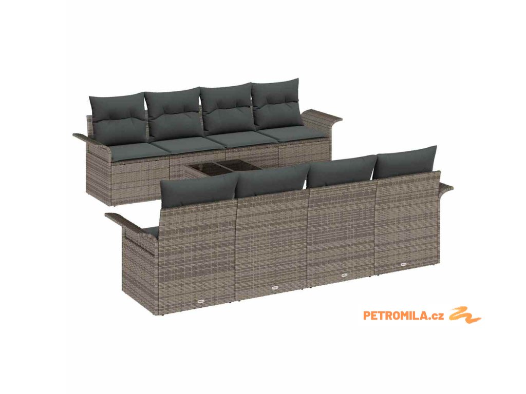 Sada zahradních pohovek 9 pcs Šedá Polyratan a ocel a sklo