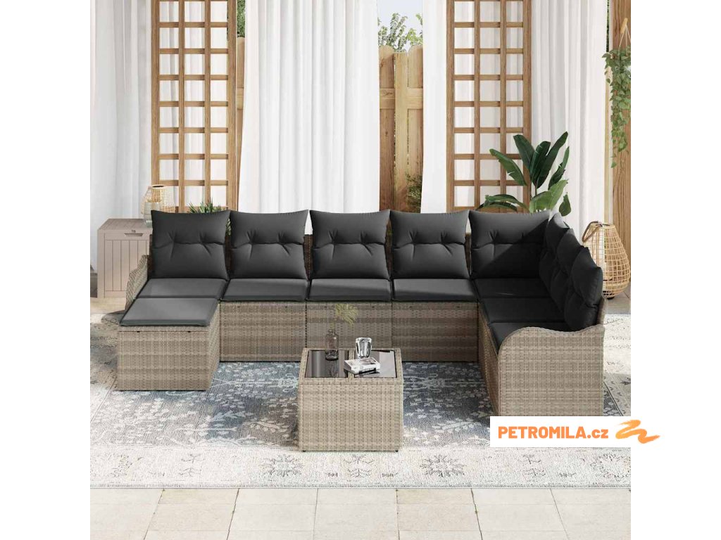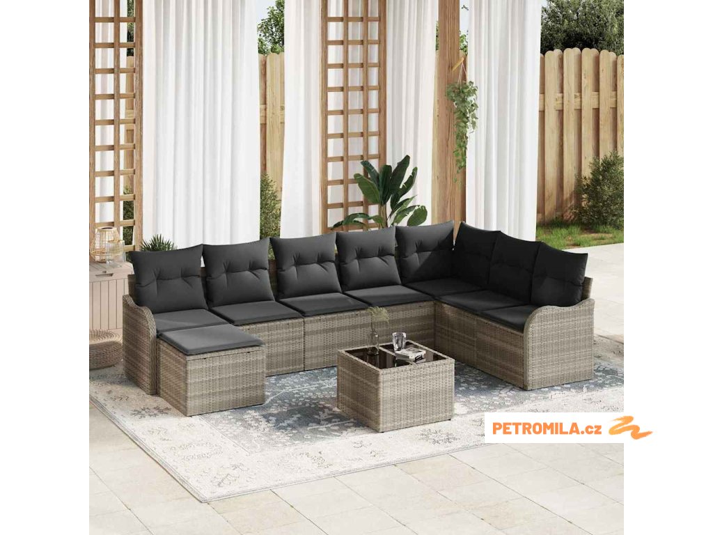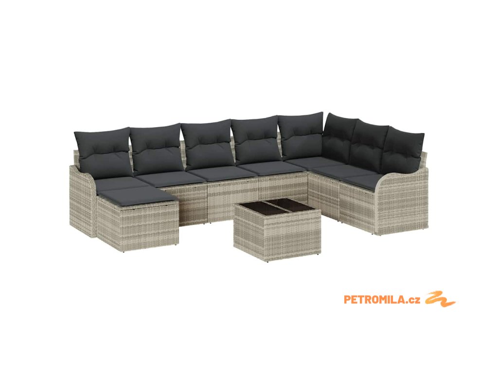 Sada zahradních pohovek 9 pcs Světle šedá Poly ratan