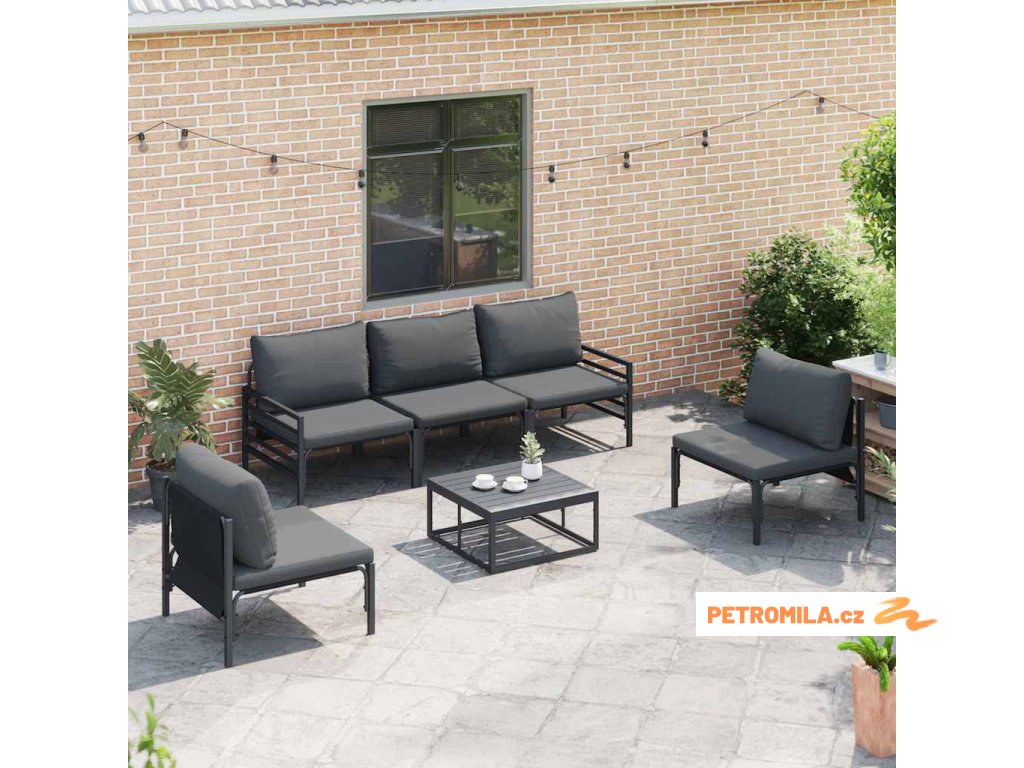 Sada zahradních pohovek s polštářem 6 pcs Černá Poly Ratan