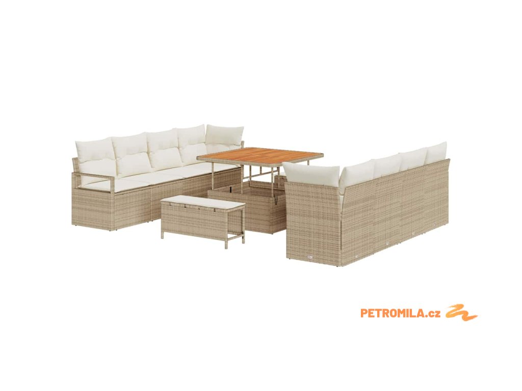 - Materiály: Pohovková sada je z kvalitního poly ratanu, který vypadá moderně, ale přirozeně a vydrží. Ocelový rám je práškově lakovaný pro extra ochranu, takže je pevný. Akáciové dřevo dodává příjemný teplý vzhled a krásně spojuje modernu s klasikou. Materiály jsou odolné proti UV záření, což zaručuje jejich výdrž na slunci.