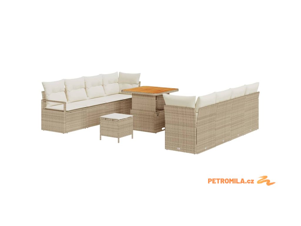 - Materiály: Pohovková sada je z kvalitního poly ratanu, který vypadá moderně, ale přirozeně a vydrží. Ocelový rám je práškově lakovaný pro extra ochranu, takže je pevný. Akáciové dřevo dodává příjemný teplý vzhled a krásně spojuje modernu s klasikou. Materiály jsou odolné proti UV záření, což zaručuje jejich výdrž na slunci.