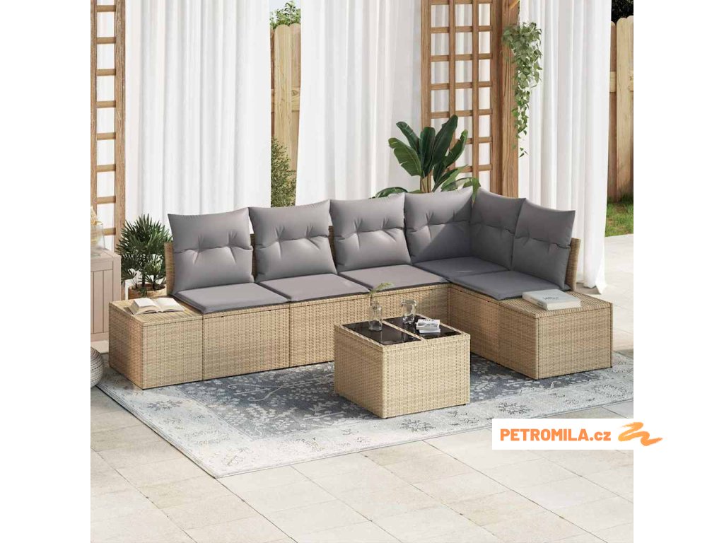 Sada zahradních pohovek Béžová a Světle šedá polyratan