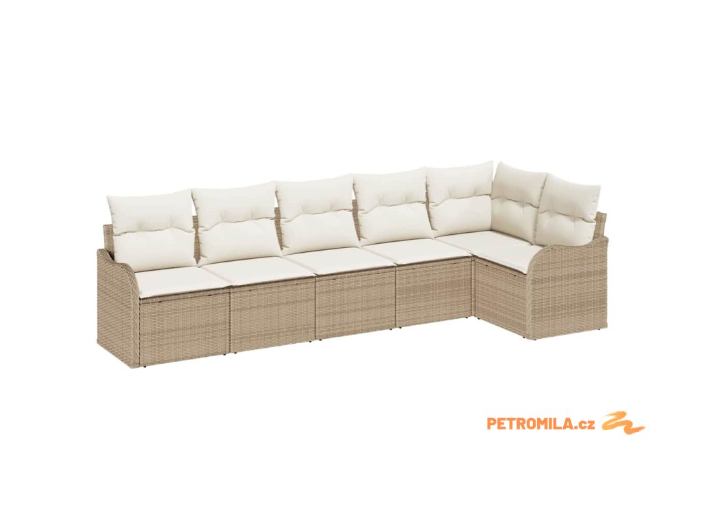 Zahradní jídelní souprava s polštářem 7 pcs Béžová Poly ratan