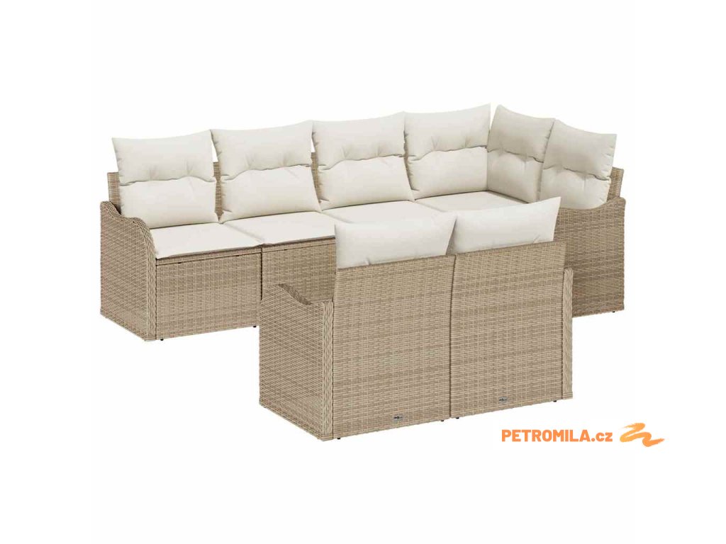 Sada zahradních pohovek s polštářem 6 pcs Béžová Poly ratan