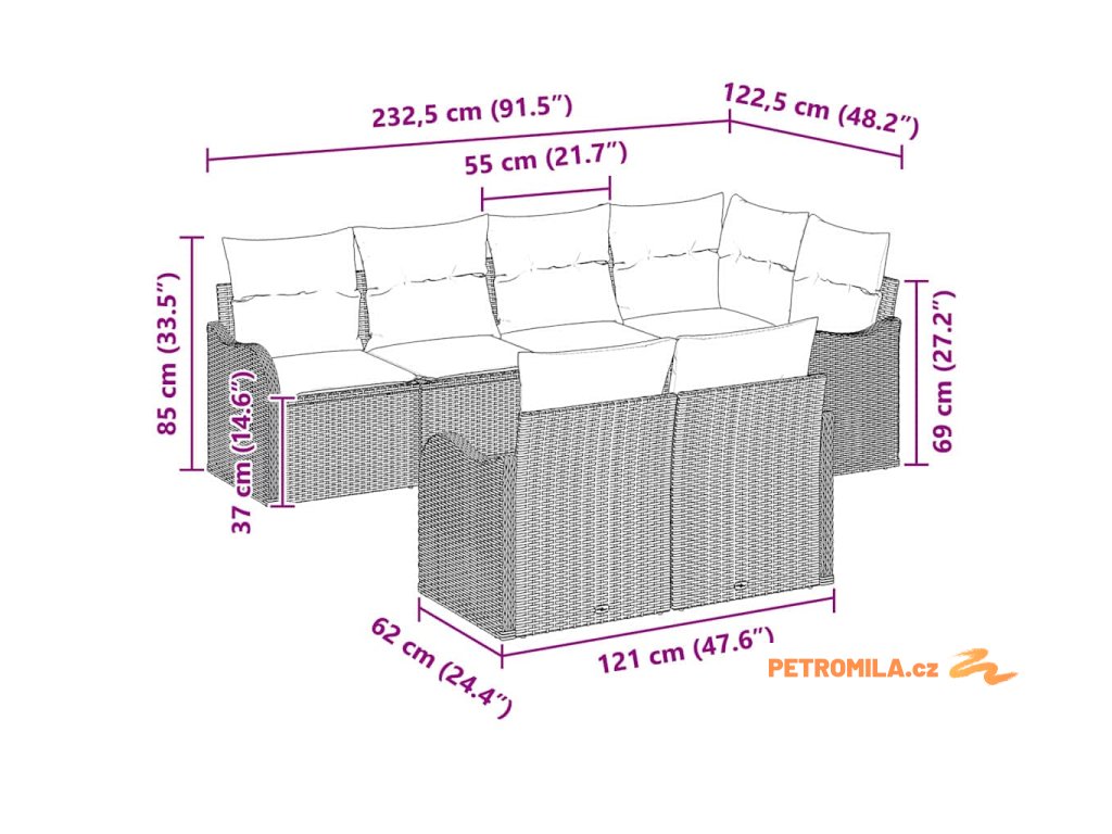 Tento zahradní pohovkový set spojuje moderní vzhled s praktickými funkcemi, navržený tak, aby vylepšil tvůj venkovní prostor. Pohodlně se sem vejde až 7 lidí, takže je super pro rodinné akce nebo laxní chvíle s kamarády na zahradě nebo terase. S elegantním pleteným designem dodává tvému venkovnímu prostoru šmrnc. Pevné materiály jsou vyrobeny tak, aby vydržely, a poskytují pohodlné sezení, jistě tě přimějí k relaxaci a užívání si přírody.