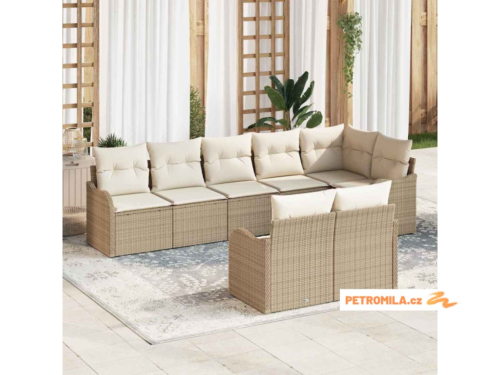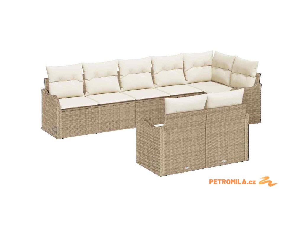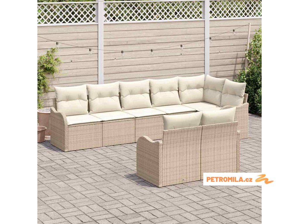 Sada zahradních pohovek s polštářem 8 pcs Béžová Poly ratan
