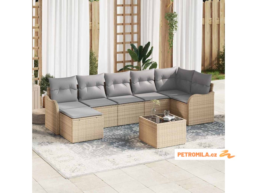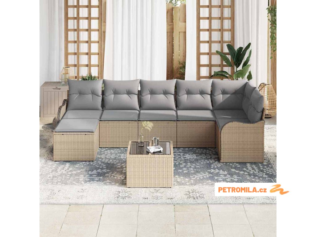 Sada zahradních pohovek s polštářem 8 pcs Béžová Poly ratan