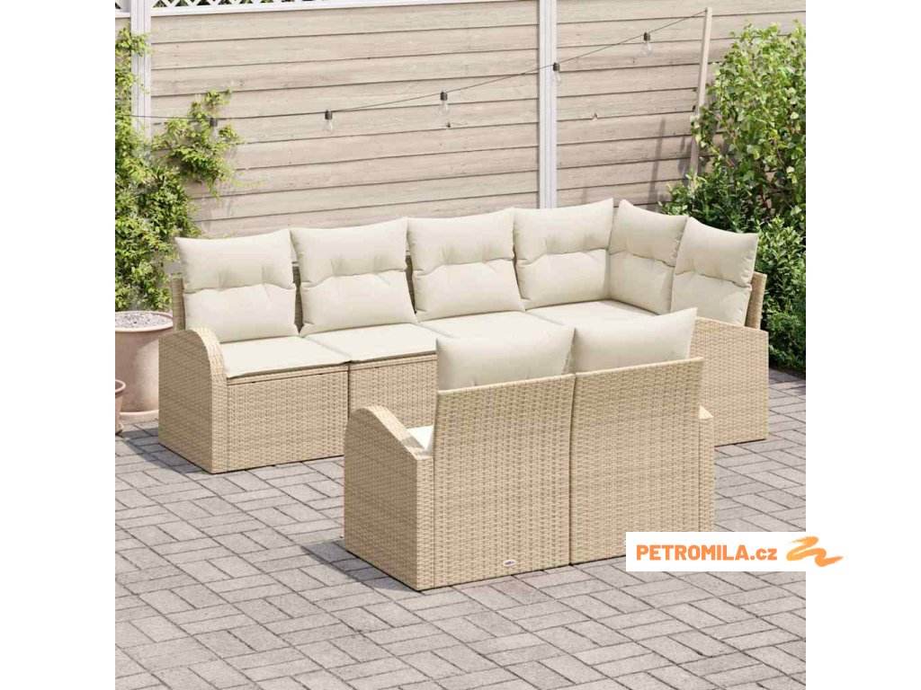 Sada zahradních pohovek s polštářem 6 pcs Béžová Poly ratan