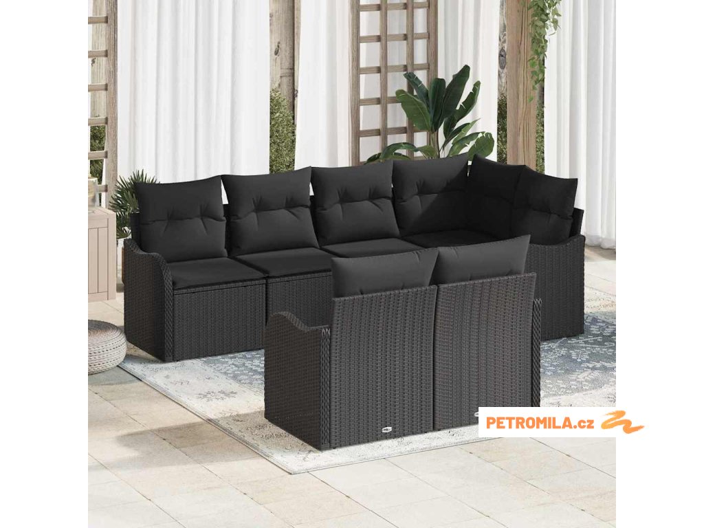 11dílná zahradní sedací souprava s poduškami černá polyratan