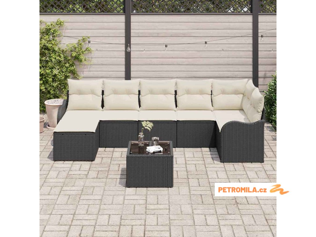 Sada zahradních pohovek 9 pcs Černá polyratan