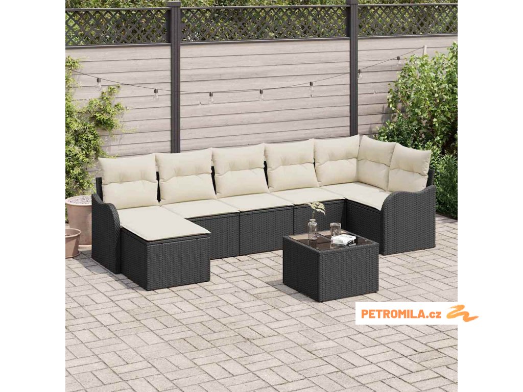Sada zahradních pohovek 8 pcs Černá polyratan