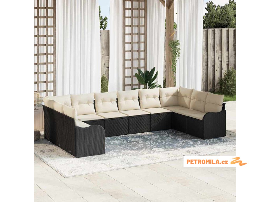 Sada zahradních pohovek 9 pcs Černá polyratan