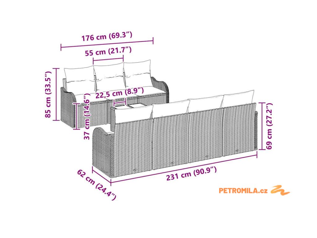 - Všestranné použití: Ideální pro zahrady, terasy a dvorky, tenhle sofa set se bez problémů přizpůsobí různým venkovním prostorům. Je navržen tak, aby vyhovoval různorodým životním stylům, od neformálních rodinných večeří po živé zahradní párty, a vytvoří atmosféru, která podporuje relaxaci a pohodu.