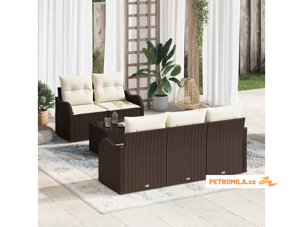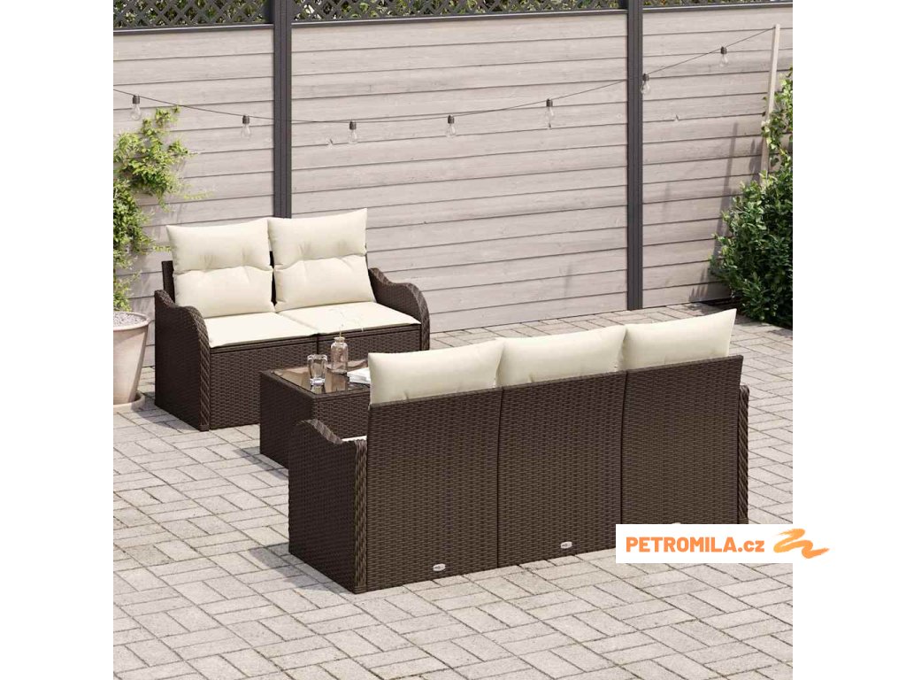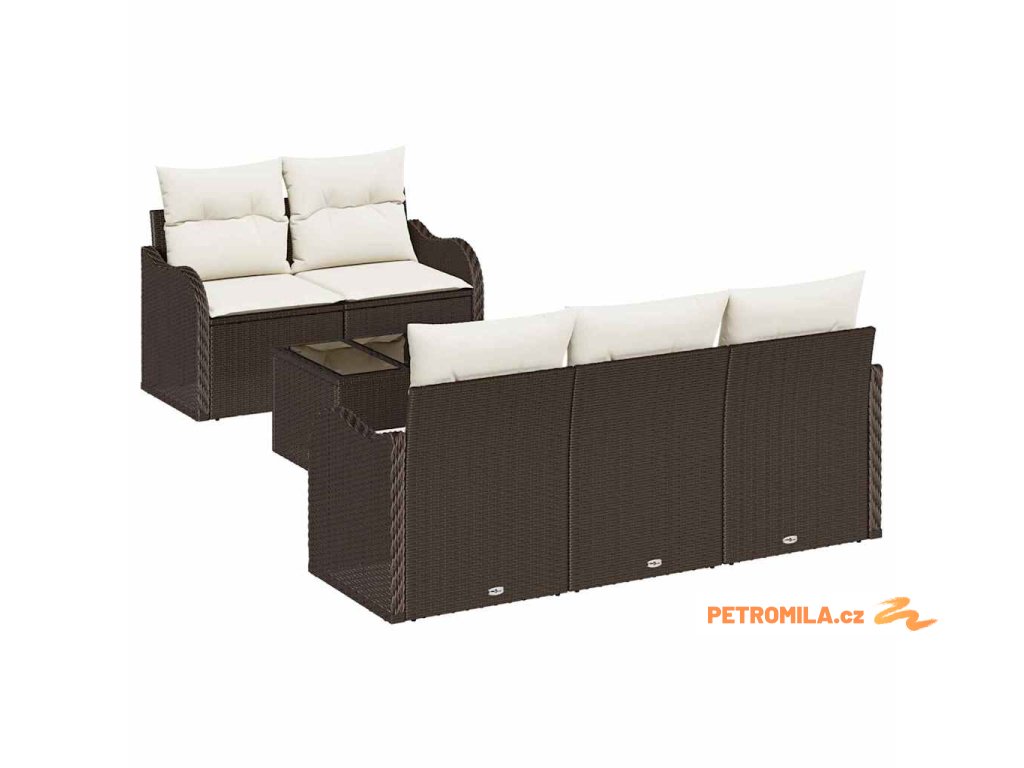 Sada zahradních pohovek s polštářem 7 pcs Hnědá Poly ratan