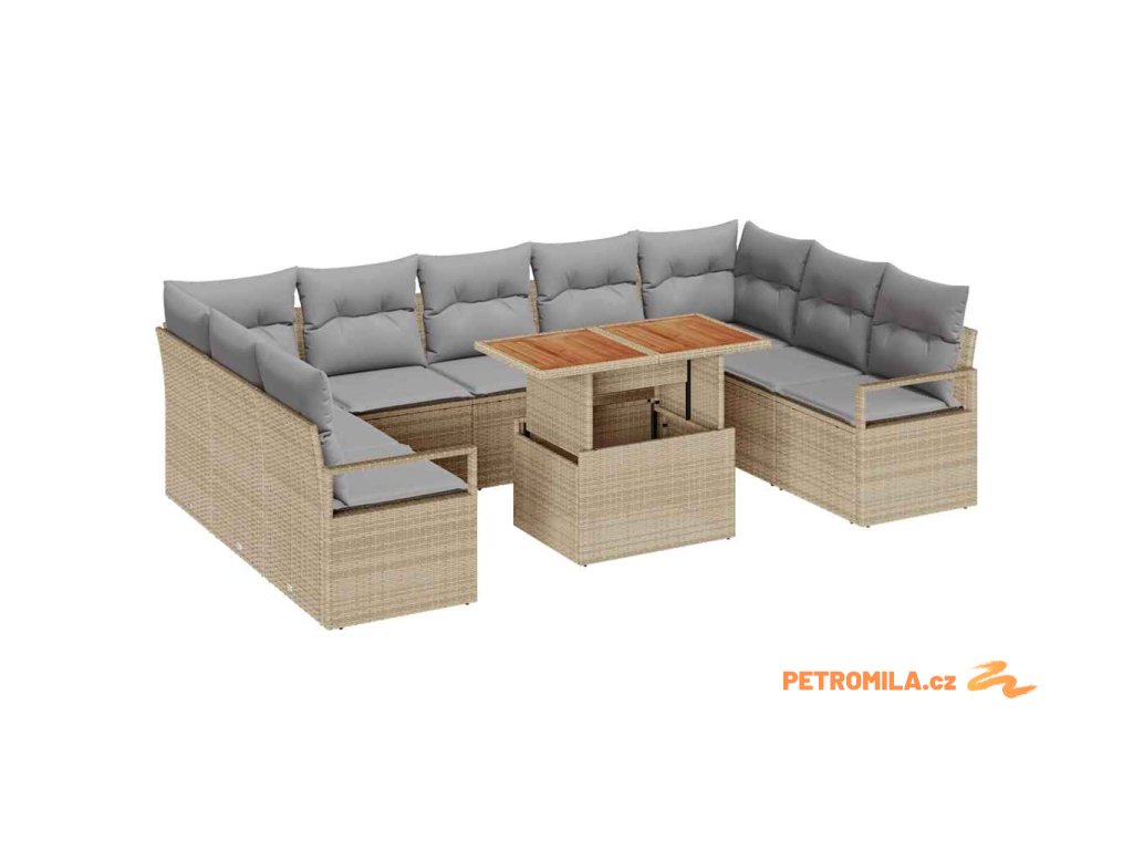 Sada zahradních pohovek s polštářem 10 pcs Beige a šedá