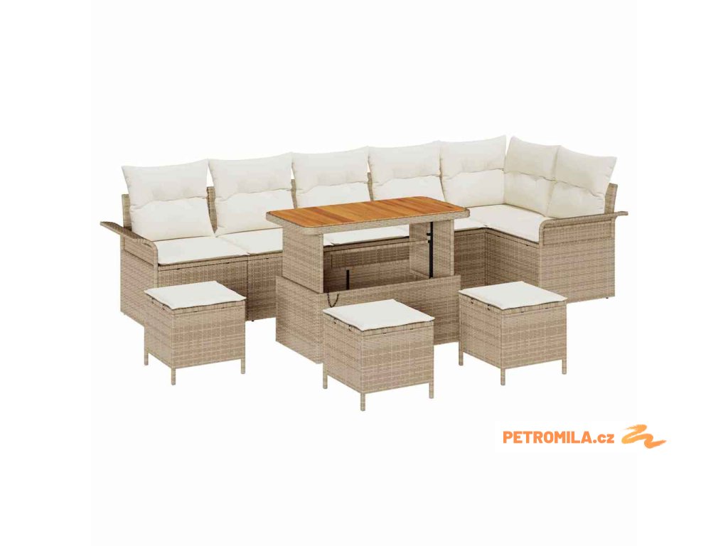 Sada zahradních pohovek s polštářem 10 pcs Béžová a krémová