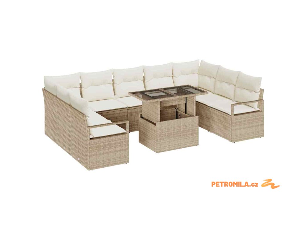 Sada zahradních pohovek s polštářem 10 pcs béžová a krémová