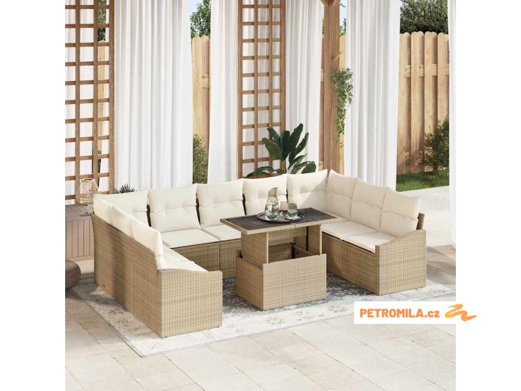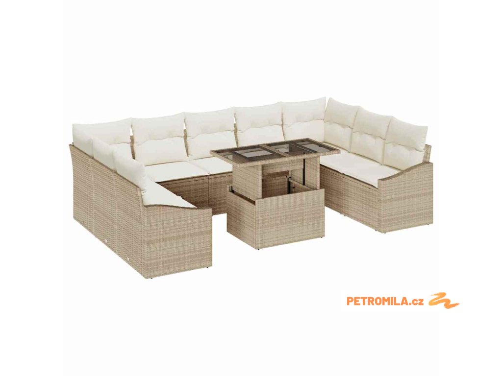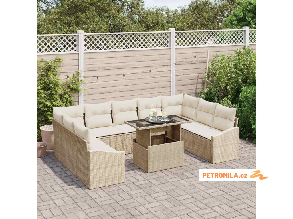Sada zahradních pohovek s polštářem 10 pcs béžová a krémová