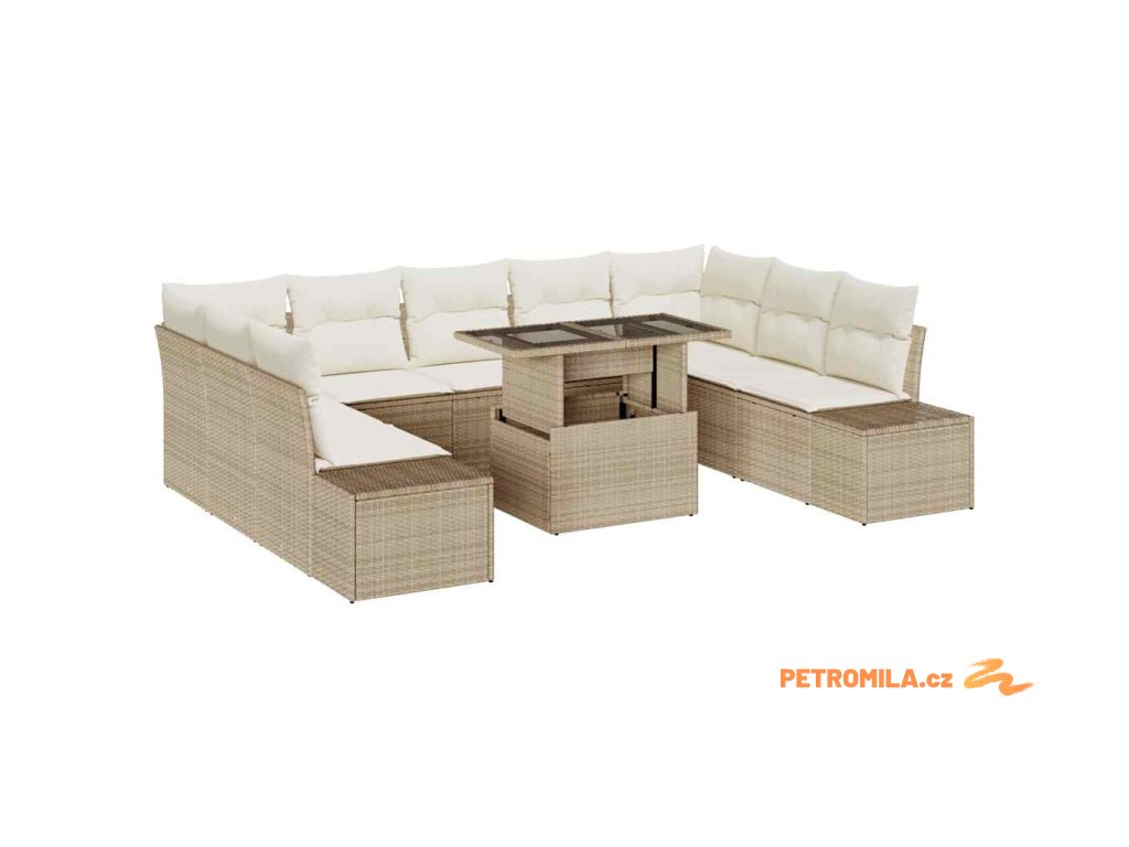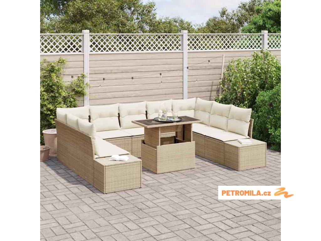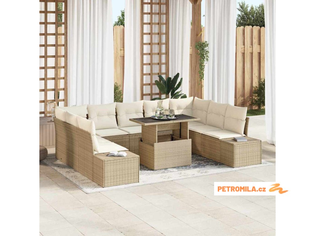 Sada zahradních pohovek s polštářem 10 pcs béžová a krémová