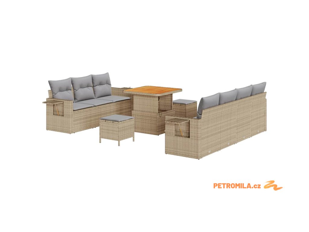 Sada zahradních pohovek s polštářem 10 pcs béžová a světle šedá