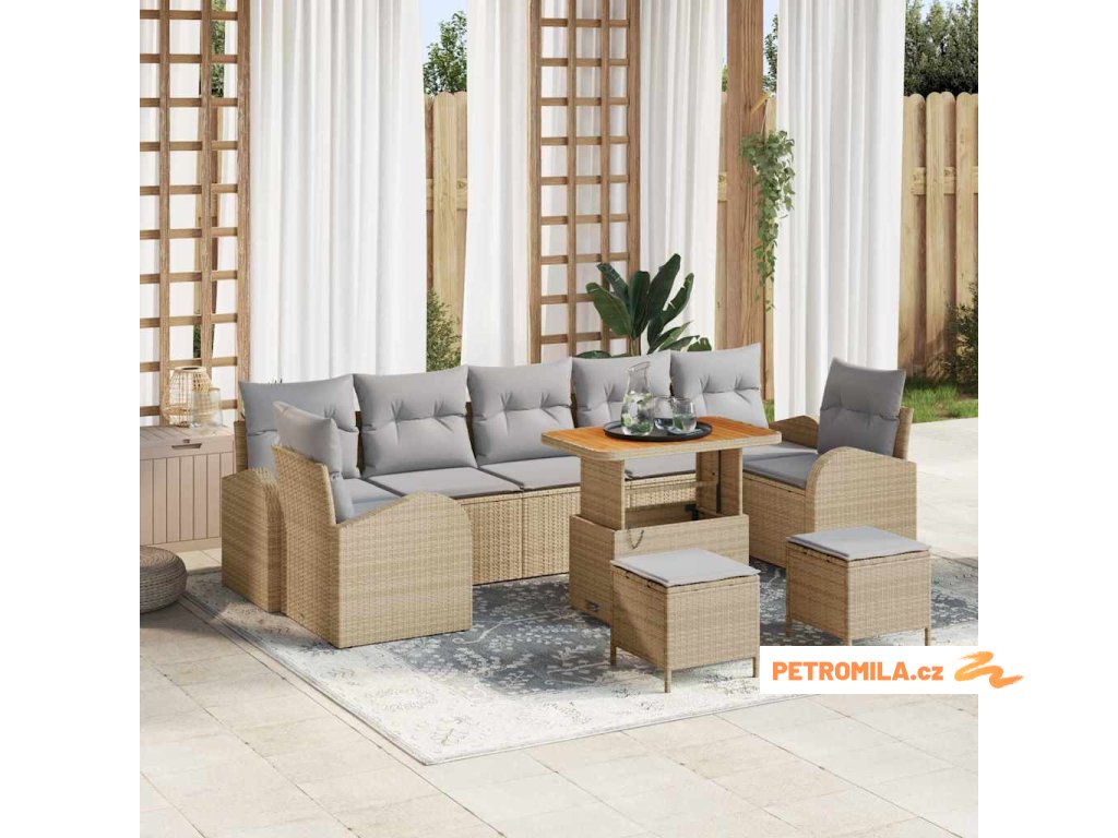 Sada zahradních pohovek s polštářem 10 pcs Béžová a Světle šedá