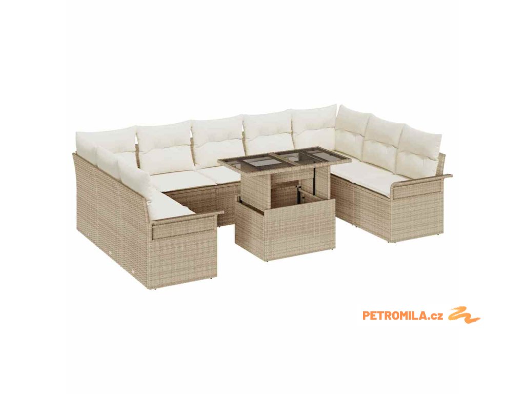 Sada zahradních pohovek s polštářem 10 pcs Béžová Poly Ratan