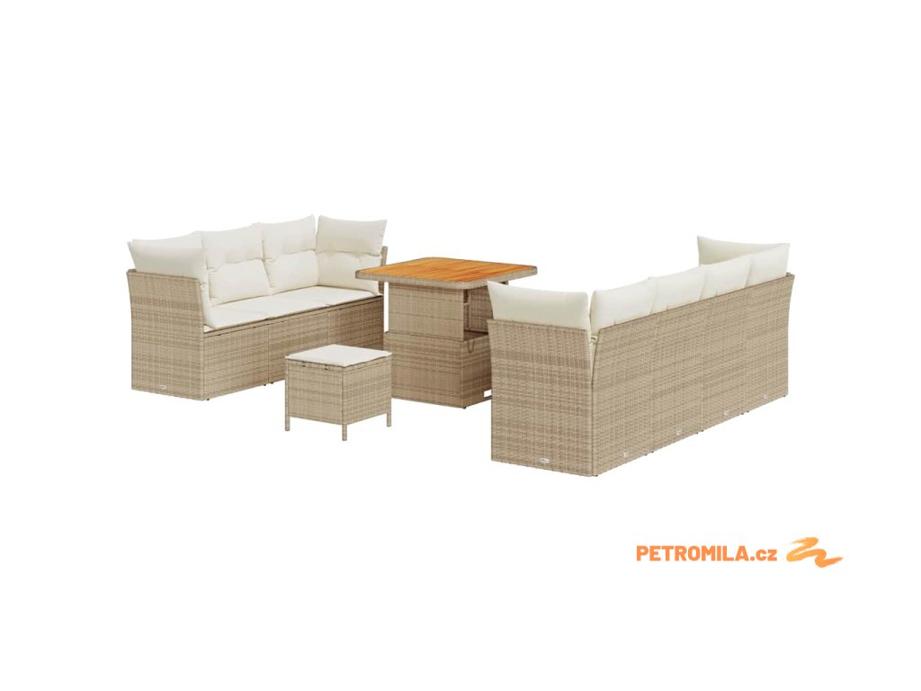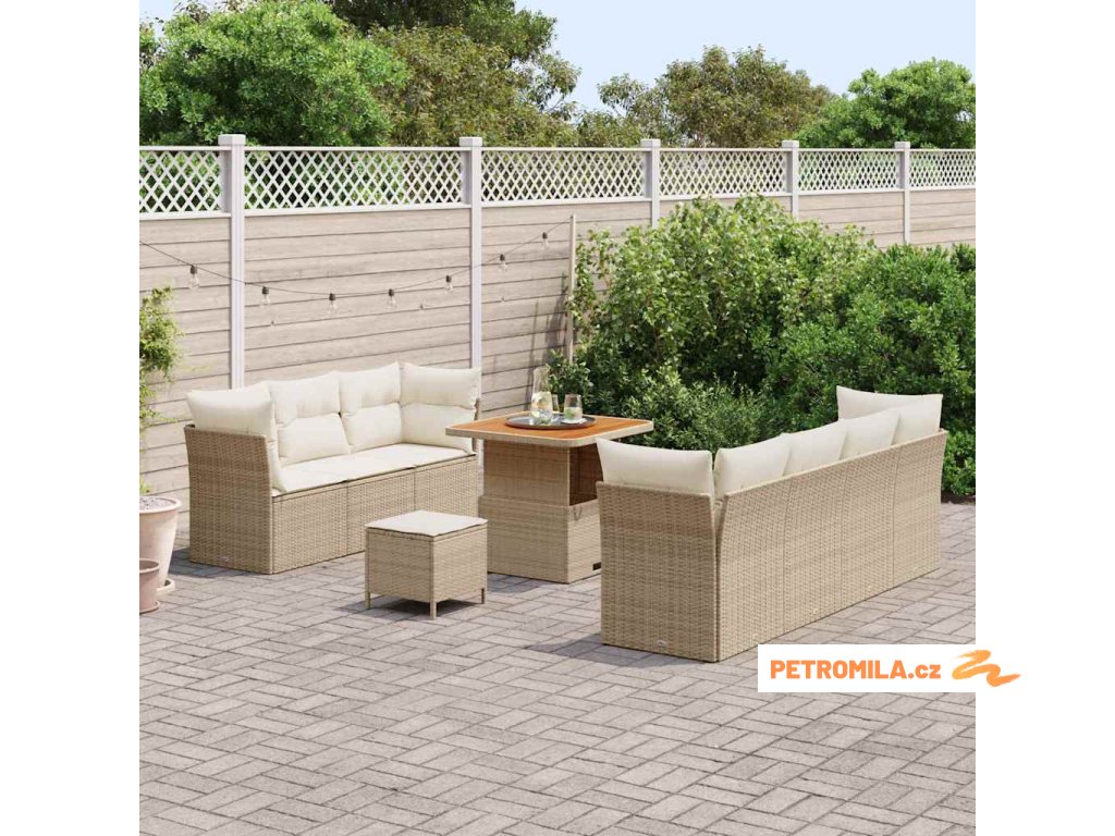 Sada zahradních pohovek s polštářem 10 pcs Béžová polyratan