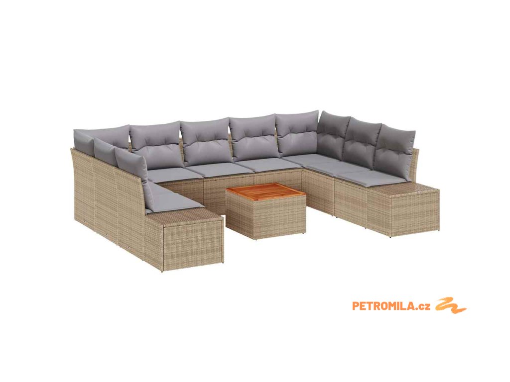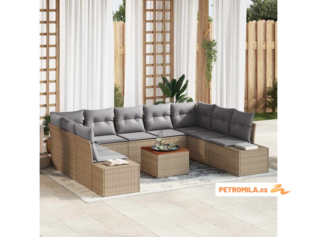 Sada zahradních pohovek s polštářem 10 pcs Béžová polyratan