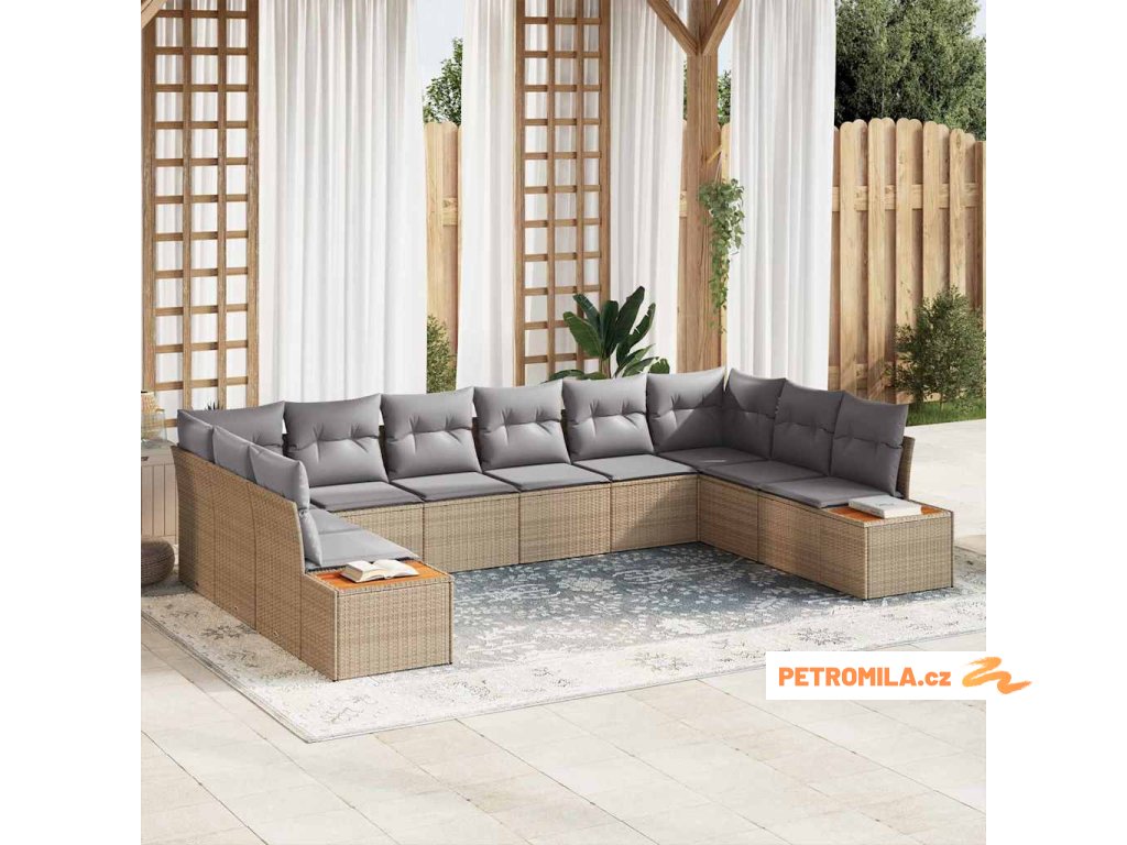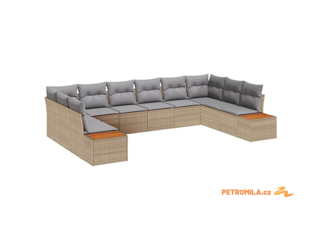 Sada zahradních pohovek s polštářem 10 pcs Béžová polyratan