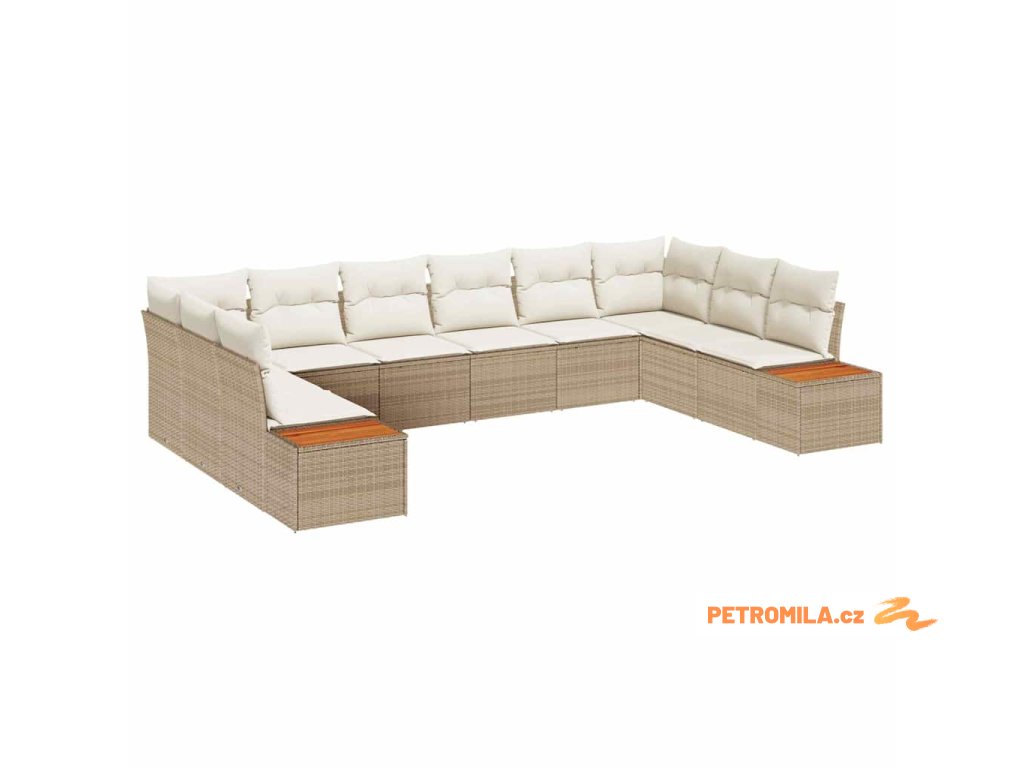 Sada zahradních pohovek s polštářem 10 pcs Béžová polyratan
