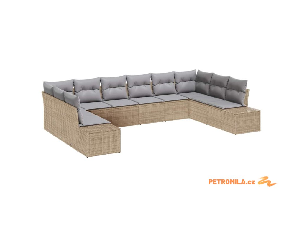 Sada zahradních pohovek s polštářem 10 pcs Béžová polyratan