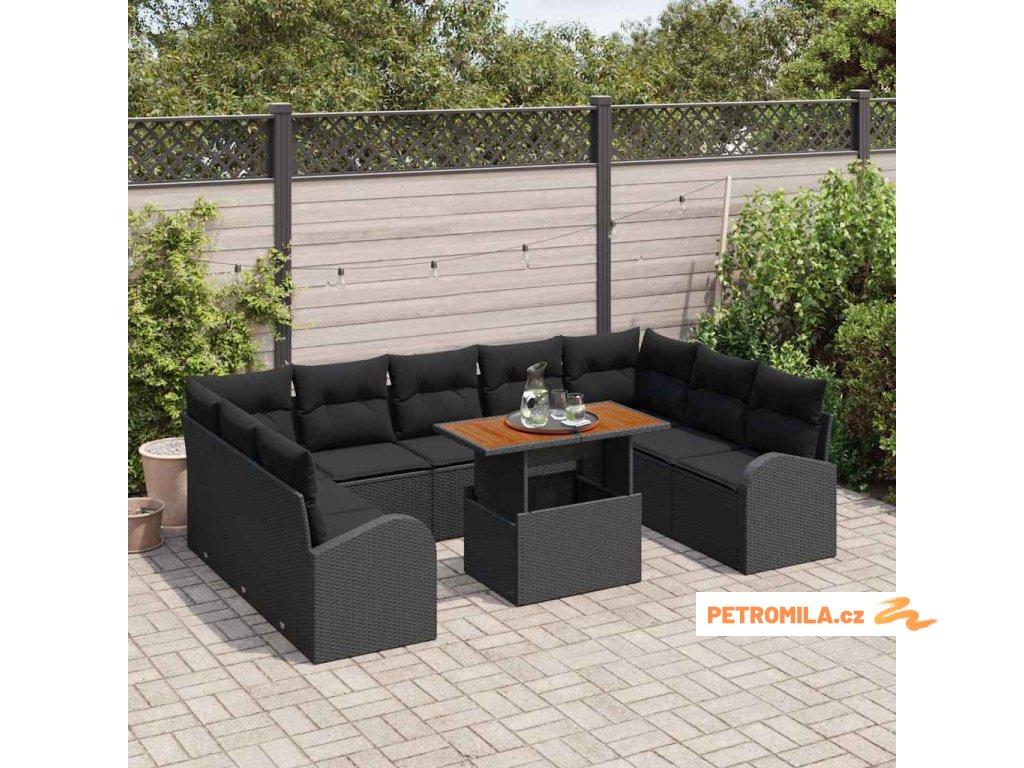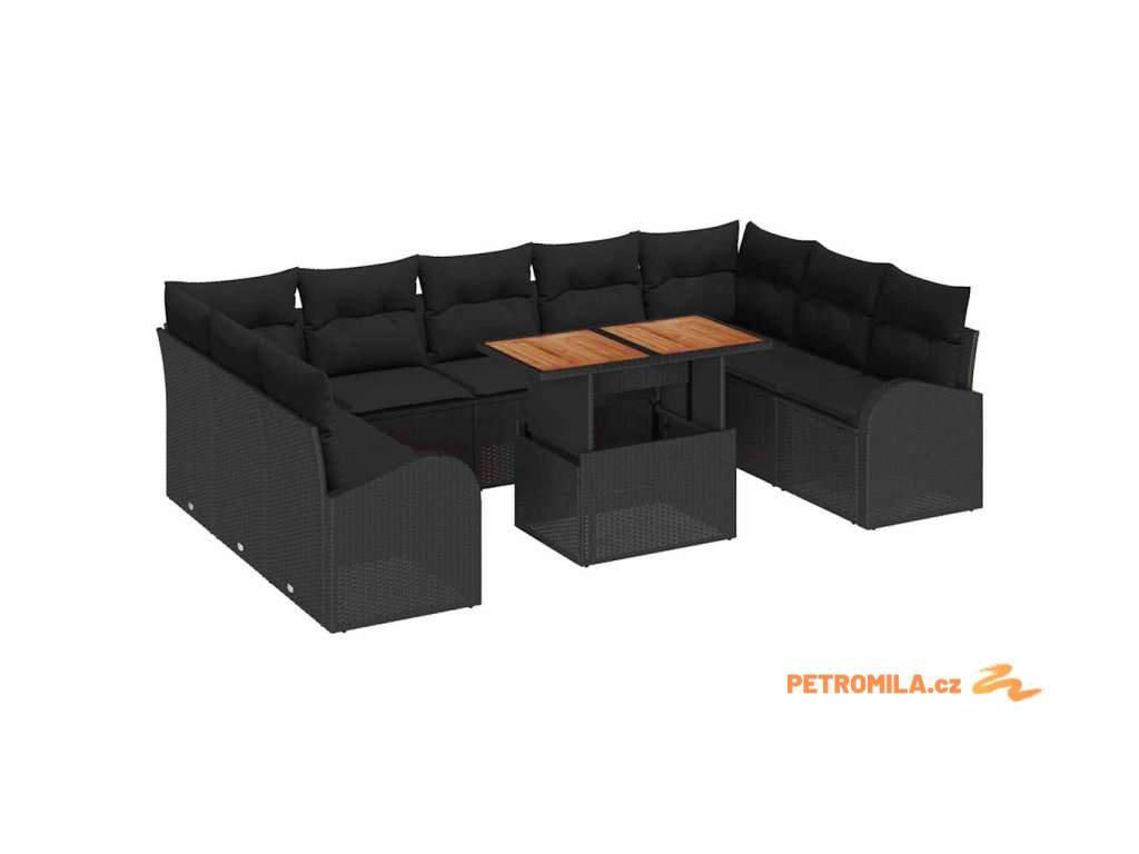 Sada zahradních pohovek s polštářem 10 pcs Černá