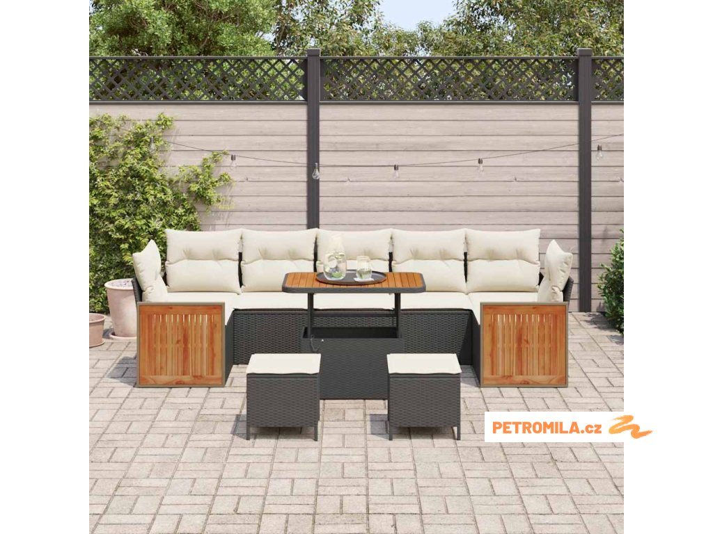 Sada zahradních pohovek s polštářem 10 pcs Černá a krémová