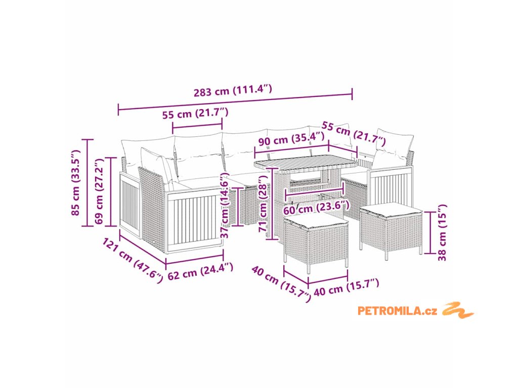 - Funkční komponenty: Díky vestavěnému úložnému prostoru má set armová sofa, středové sedáky a taburety, všechny s praktickým úložným prostorem pod nimi. Tato chytrá funkce pomáhá udržovat tvůj venkovní prostor uklizený a maximálně využitelný.