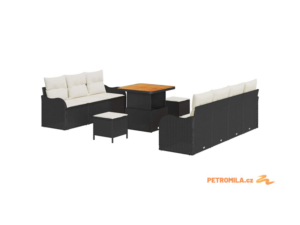 Sada zahradních pohovek s polštářem 10 pcs Černá a krémová